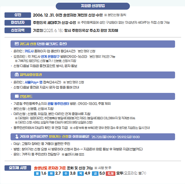 • 온라인 신청: 카드사, 간편결제앱, 지역상품권앱에서 보호자 명의로 가능