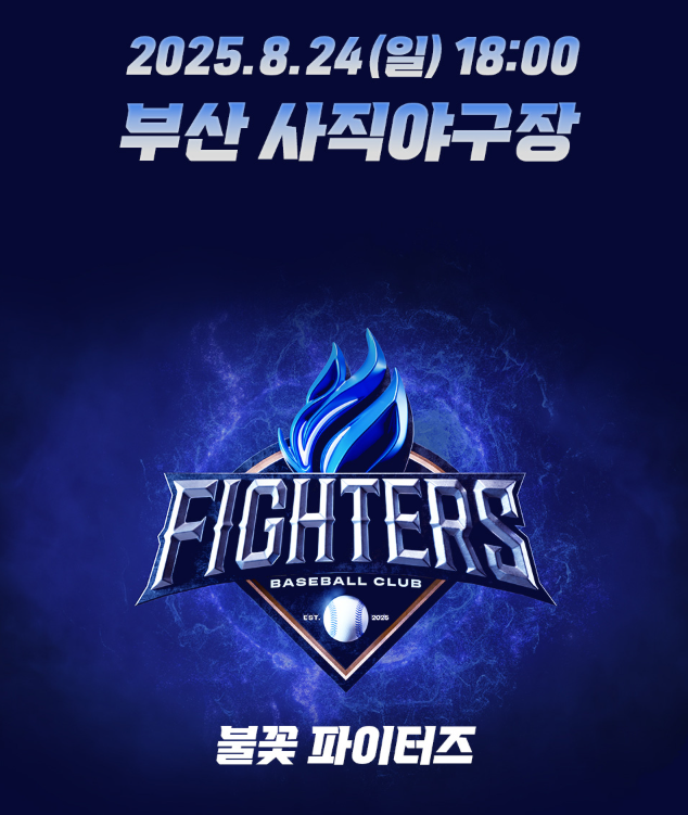 - 2025년 8월 24일(일) 오후 6시, 부산 사직야구장에서 불꽃파이터즈와 부산고등학교의 직관 경기가 열린다.